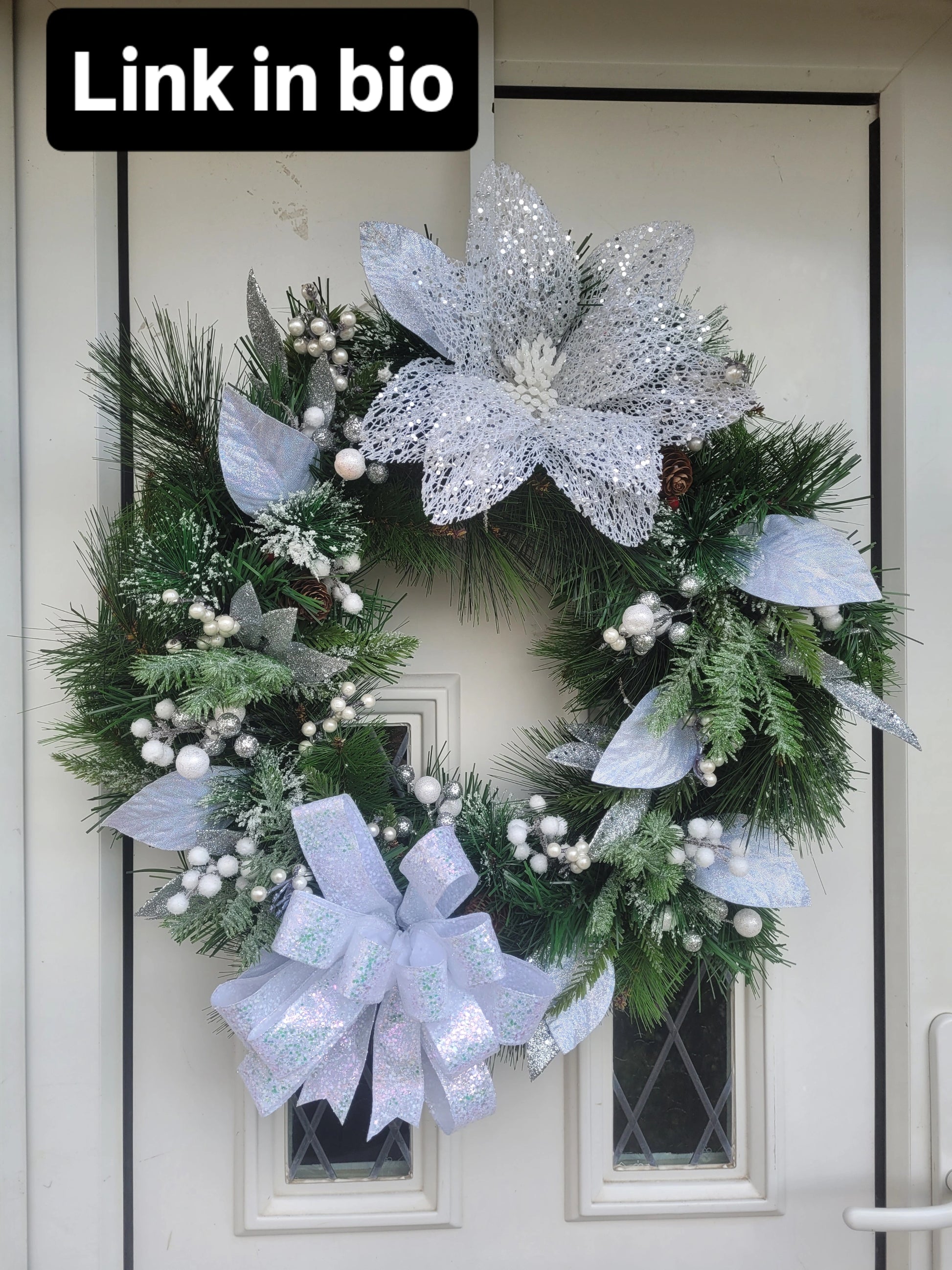 CHRISTMAS/WINTERD DELUXE WREATH 62 CM APPROX. WHITE AND SILVER WITH PEARLISED BERRYS. P & P EXTRA. COUNTRY WIDE DELIVERY WITH TRACKER NUMBER ON DISPATCH.